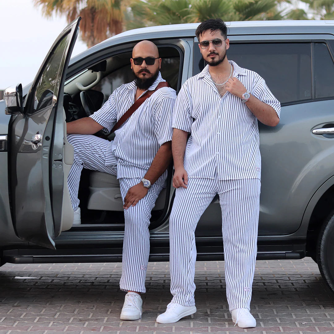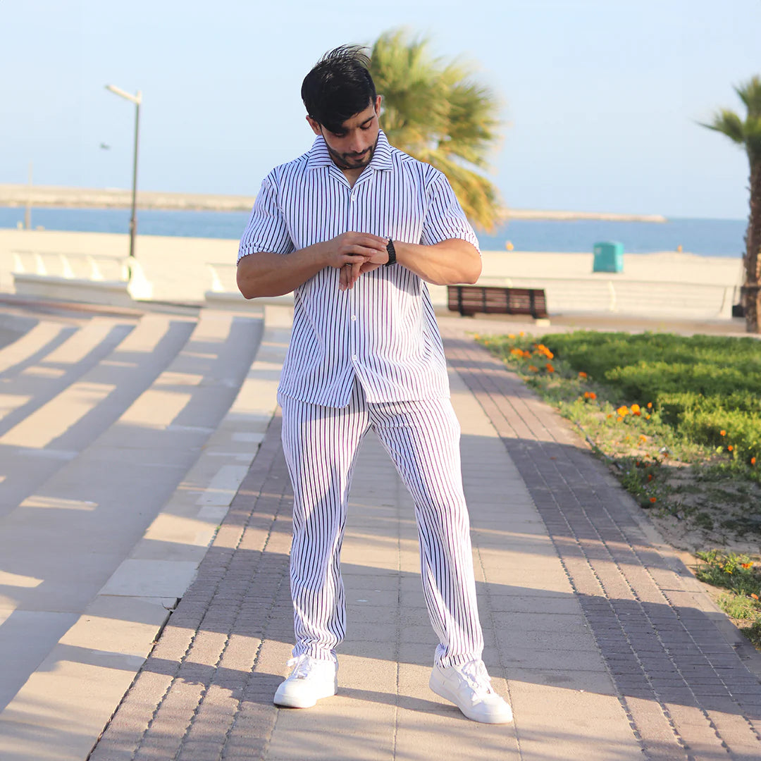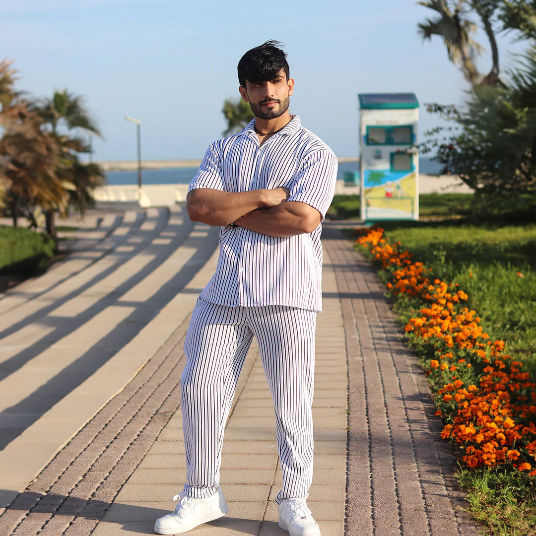 Linen White & Black stripe Cord Set